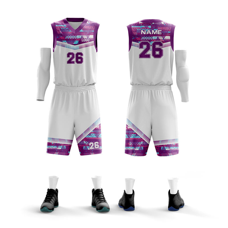 ชุดบาสเก็ตบอลสำหรับฝึกซ้อมกลางแจ้ง ดีไซน์สีสันสดใส ผลิตเร็ว รับผลิตจำนวนมาก ผ้าโพลีเอสเตอร์ 100%