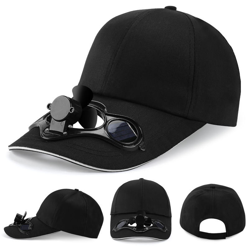 หมวกแก๊ปพัดลมพลังงานแสงอาทิตย์สำหรับกีฬากลางแจ้งฤดูร้อน แบบ unisex ปรับได้ ดีไซน์เรียบง่าย ป้องกันแสงแดด หมวกเบสบอลทรง Trucker