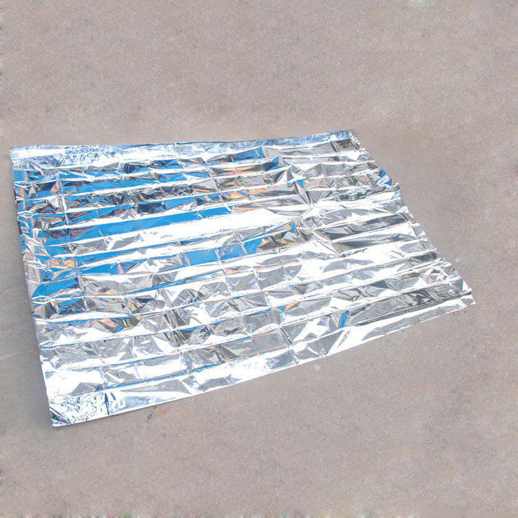 ผ้าห่มเอาตัวรอดกลางแจ้ง 130x210 ซม. ฟิล์มอลูมิเนียม EVA อุปกรณ์ตั้งแคมป์ฉุกเฉิน ป้องกันความชื้น สีเงิน