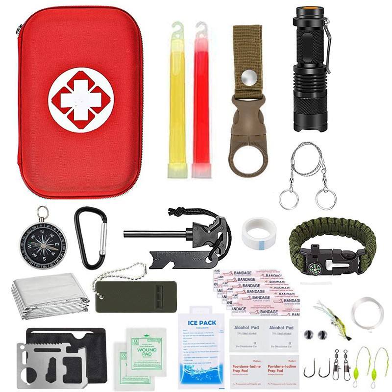 ชุดปฐมพยาบาลเอาตัวรอดกลางแจ้ง 22x5x13 ซม. อุปกรณ์ฉุกเฉินอเนกประสงค์สำหรับตั้งแคมป์เดินป่าตกปลาผจญภัย