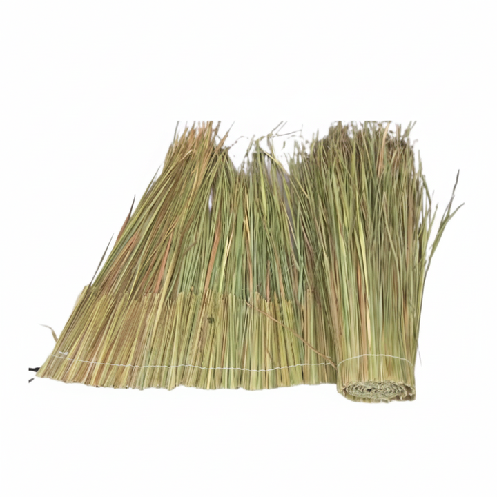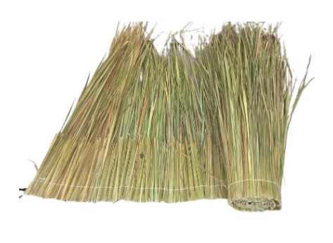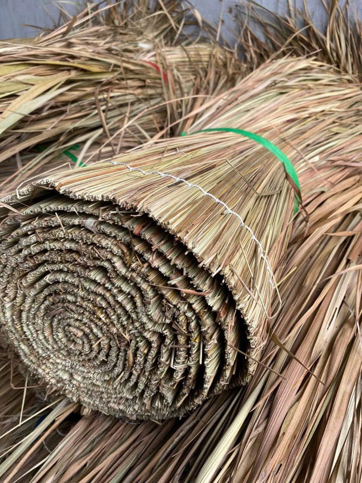 หลังคาโพลีเอทช์สังเคราะห์ทนไฟกลางแจ้งกระเบื้องหญ้าเทียม PE สำหรับตกแต่งชายหาดน้ำพุร้อน