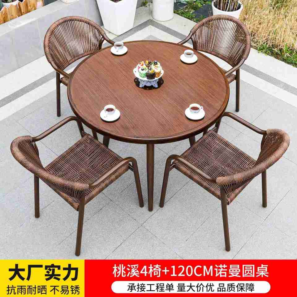 เก้าอี้และโต๊ะกลางแจ้งร่มหวายสาม-ห้าชิ้นสำหรับระเบียงสวนเก้าอี้เหล็กดัดโต๊ะและเก้าอี้