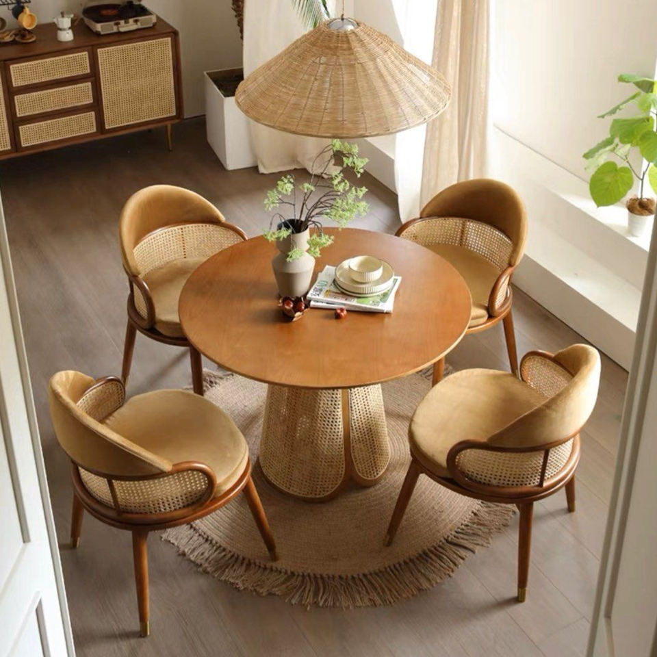 ชื่อผลิตภัณฑ์:โต๊ะหวายไม้สักทรงกลมเฟอร์นิเจอร์กลางแจ้งโต๊ะรับประทานอาหาร-USI