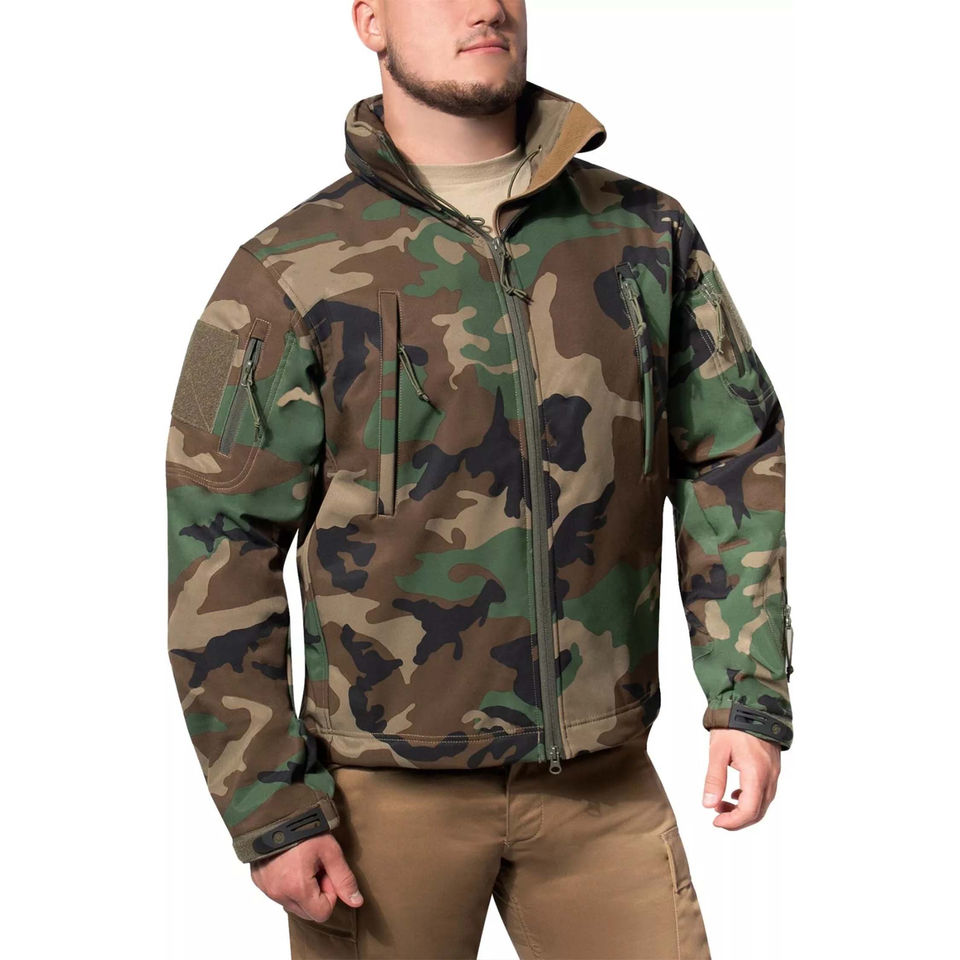 เสื้อแจ็คเก็ตยุทธวิธีกลางแจ้งสำหรับผู้ชาย คอตั้งบุขนหนานุ่ม เสื้อแจ็คเก็ตซอฟต์เชลล์กันลมกันน้ำลายพรางสำหรับฤดูหนาว