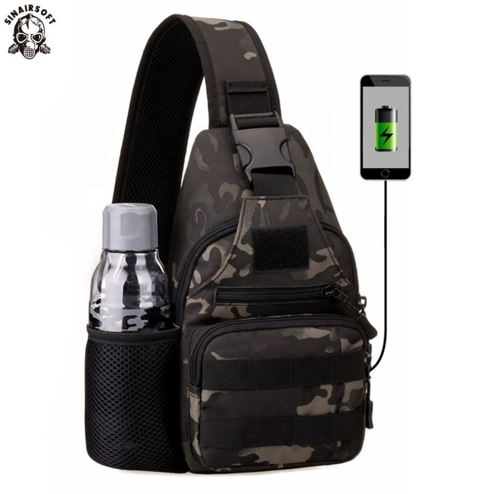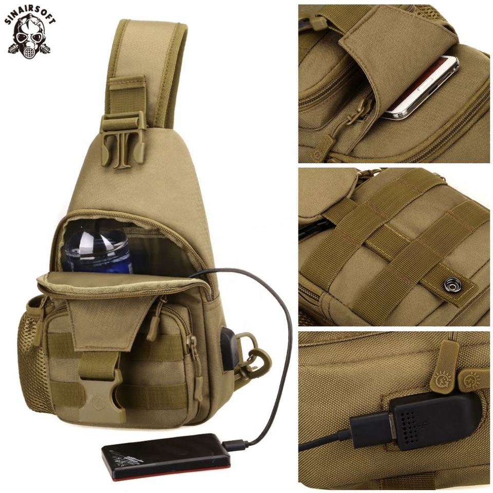 กระเป๋าสะพายไหล่ยุทธวิธีกลางแจ้งพร้อมช่องเสียบ USB สำหรับชาร์จ ทนทานต่อการใช้งาน เหมาะสำหรับเดินทาง แคมป์ปิ้ง ปั่นจักรยาน และใช้เป็นกระเป๋าคาดอก
