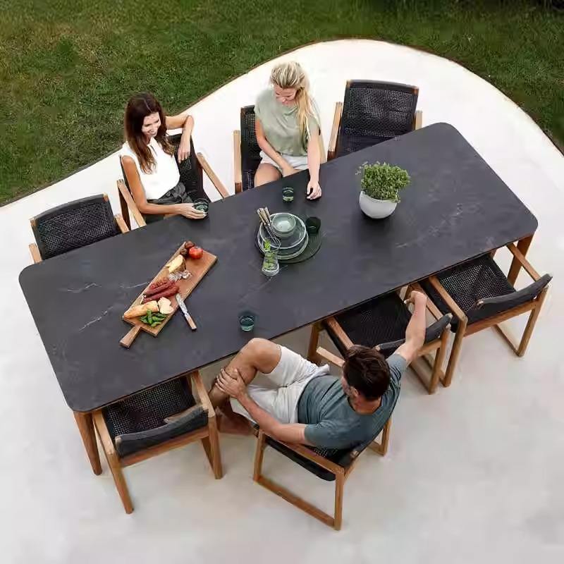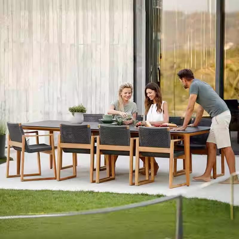 ชุดโต๊ะและเก้าอี้ไม้สักสำหรับสวนกลางแจ้ง กันน้ำ เหมาะสำหรับลานบ้าน ระเบียง และพื้นที่กลางแจ้ง
