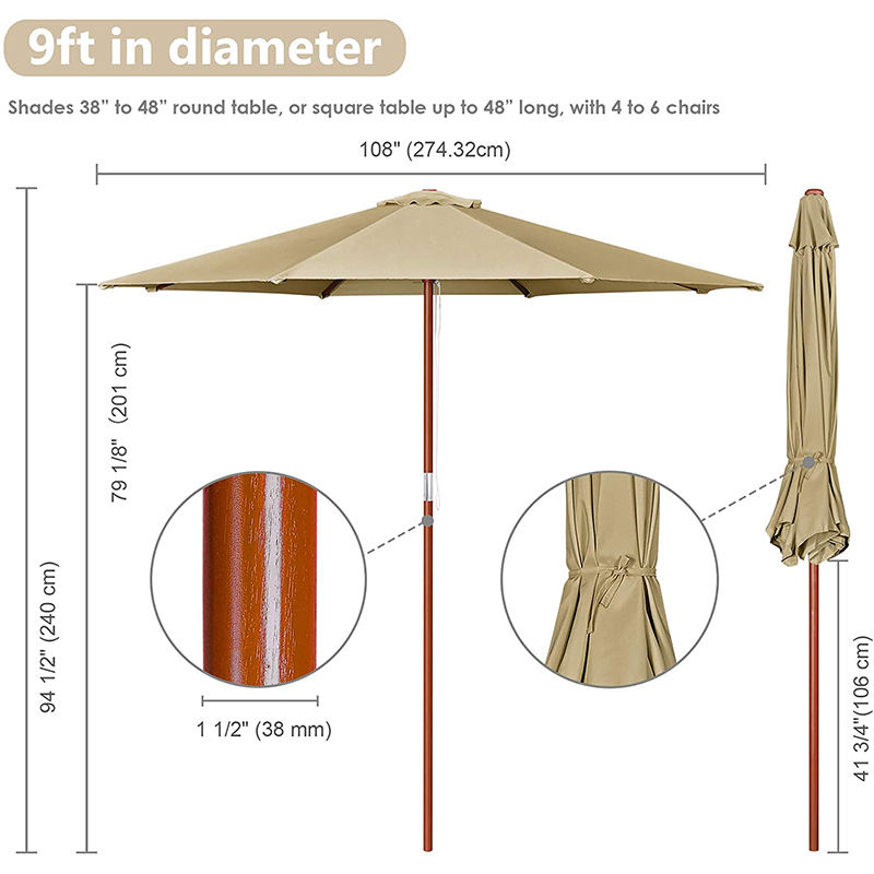 ร่มสนามขนาดใหญ่ สำหรับสวน ตลาด ลานไม้ กันน้ำ 9 ฟุต ป้องกันรังสียูวี แข็งแรงทนทาน