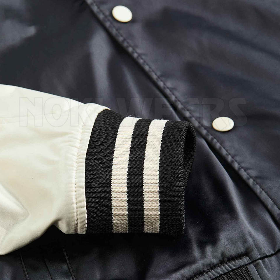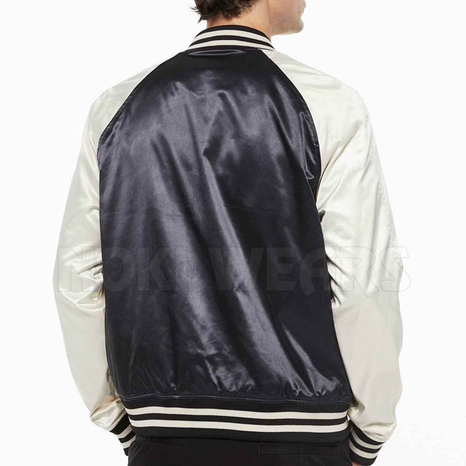 แจ็คเก็ตเลตเตอร์แมนผ้าซาตินสำหรับผู้ชาย ใช้กลางแจ้ง MOQ ต่ำ รับผลิตแบรนด์ส่วนตัว ดีไซน์ใหม่