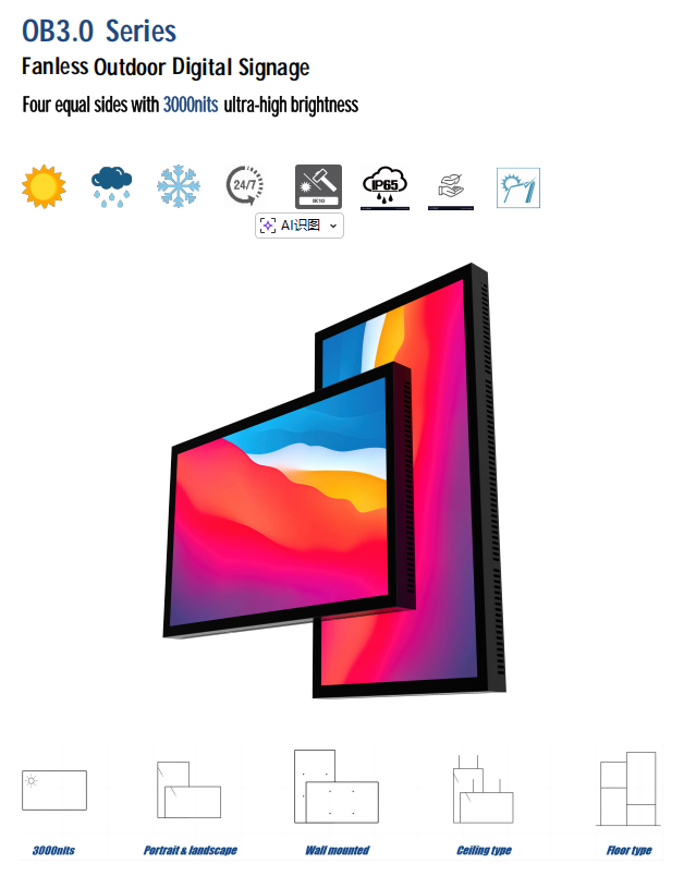 จอแสดงผล LCD ติดผนังภายนอกอาคาร 3000nits พร้อมเทคโนโลยี Optical Bonding, ป้ายอิเล็กทรอนิกส์ จอสัมผัส LCD ป้ายดิจิทัล QLED