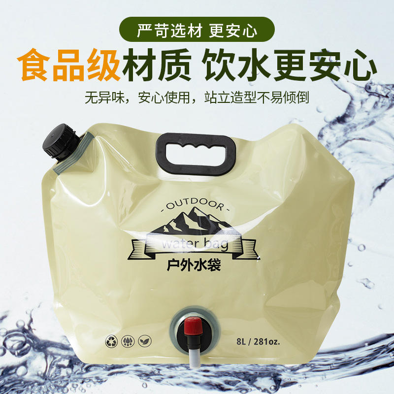ถุงน้ำกลางแจ้ง 8 ลิตร ถุงน้ำพับได้สำหรับตั้งแคมป์ปิกนิกอุปกรณ์เอาตัวรอดสีกากี