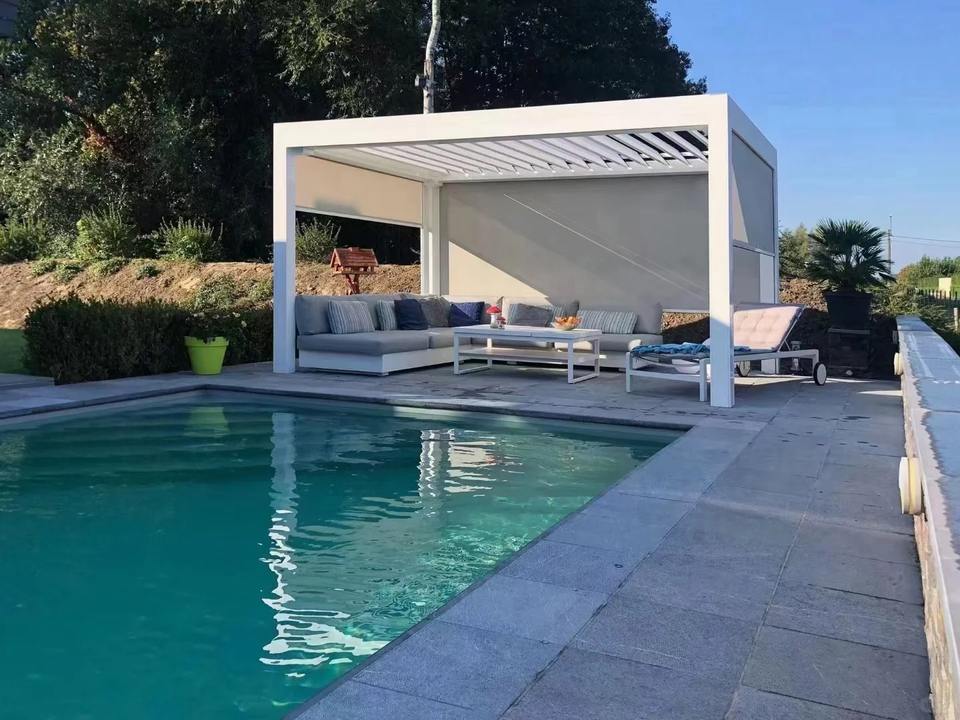 ศาลาพักผ่อนกลางแจ้งแบบกันน้ำ โครงอะลูมิเนียมเคลือบสีฝุ่น ระบบปรับอากาศชีวภาพ หลังคาพับเก็บได้ ควบคุมด้วยมอเตอร์และรีโมท