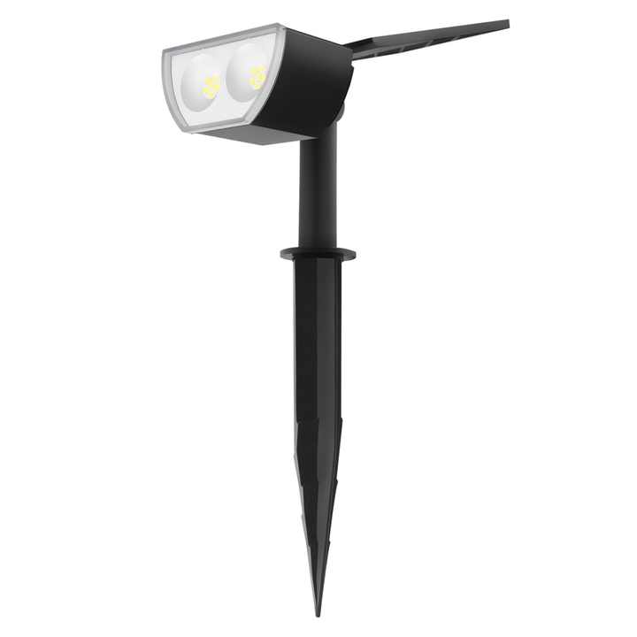ไฟส่องสวนพลังงานแสงอาทิตย์แบบกันน้ำกลางแจ้ง IP65 วัสดุ ABS ติดผนังและเสียบลงดินได้ สำหรับสวน สนามหญ้า และผนัง พร้อมไฟสปอตไลท์พลังงานแสงอาทิตย์แบบแยกส่วน