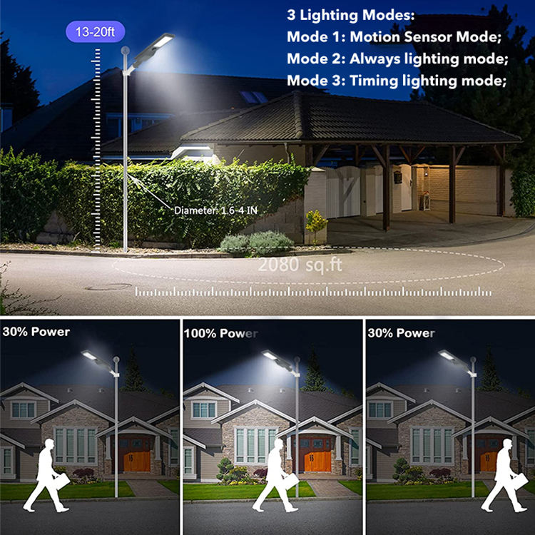 โคมไฟสวน IP65กันน้ำกลางแจ้ง100W 200W 300W อะลูมิเนียมแบบ LED ไฟถนนพลังงานแสงอาทิตย์แบบครบวงจร