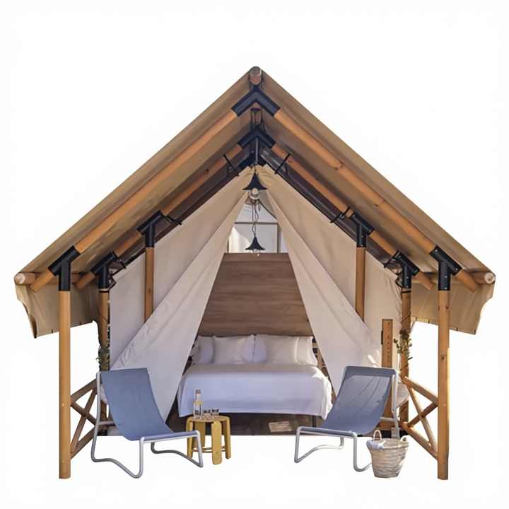 เต็นท์ซาฟารีหรูหราสำหรับทุกฤดู ทำจากผ้าอ๊อกซ์ฟอร์ดกันน้ำสำหรับใช้งานกลางแจ้ง ขนาด 5x9 เมตร มีสองห้องนอน เหมาะสำหรับแคมป์ปิ้ง รีสอร์ท และการเดินทางในทะเลทราย