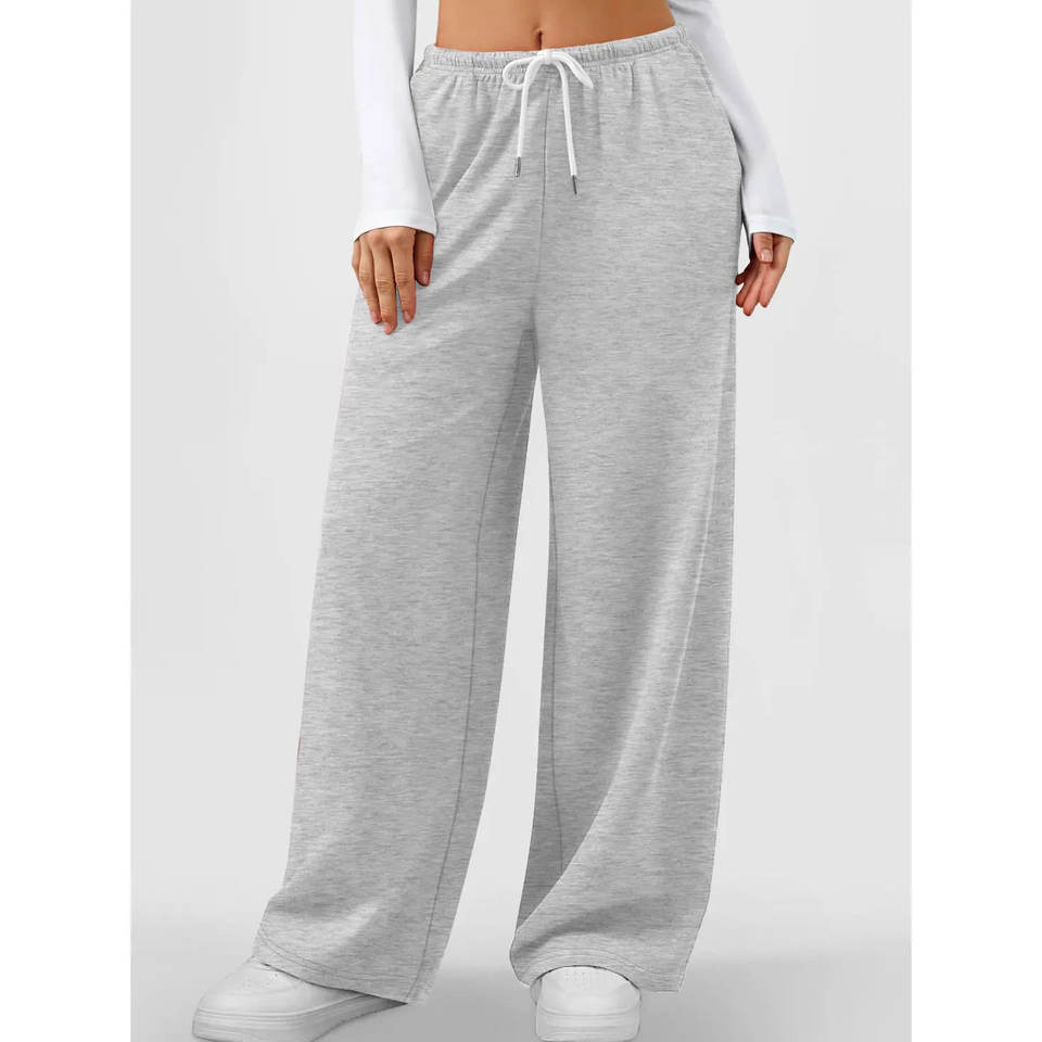 กางเกงสเวตเตอร์ทรงหลวมสำหรับใส่กลางแจ้งกางเกงวอร์มผู้หญิงเอวหูรูดสีทึบระบายอากาศได้สำหรับใส่ไปยิมกางเกงขาตรง