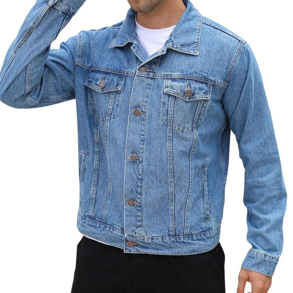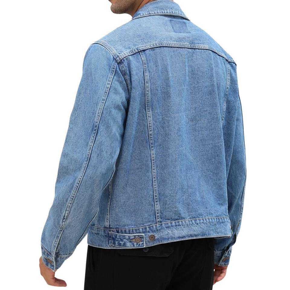 แจ็กเก็ตยีนส์สไตล์สตรีทแวร์ผ้าฝ้ายสำหรับใส่ในชีวิตประจำวันแจ็คเก็ตผ้ายีนส์ทรงปกติทนทานทนทานแบบคลาสสิกสำหรับใส่กลางแจ้ง