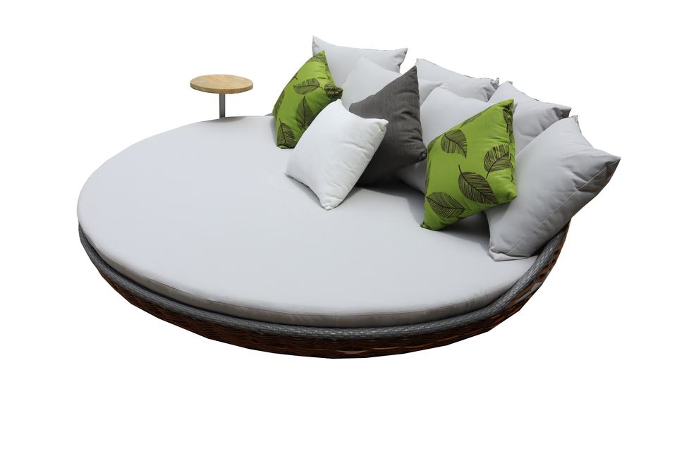 เฟอร์นิเจอร์หวายสังเคราะห์สำหรับกลางแจ้ง เตียงอาบแดดทรงกลมสำหรับสวนและลานบ้าน เหมาะสำหรับการพักผ่อนและนั่งเล่น ผลิตในเวียดนาม