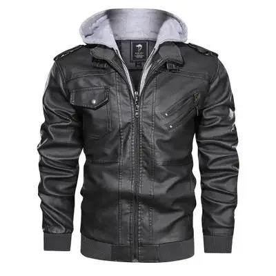 เสื้อแจ็กเก็ตหนังแกะมีซิปเข้ารูปของผู้ชายไฮสตรีทกันน้ำกันลมใช้กลางแจ้งผ้าใบสำหรับฤดูใบไม้ร่วงและฤดูหนาว