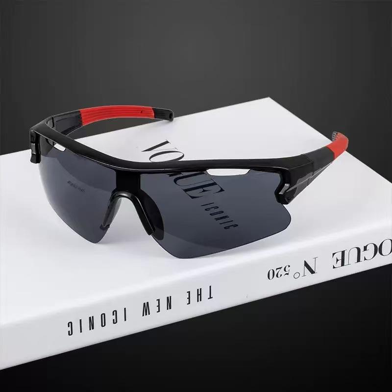 แว่นกันแดดกีฬากลางแจ้งกันลม สำหรับทุกเพศ ป้องกันรังสียูวี แว่นตาปั่นจักรยาน สีสันสดใส กรอบปรับได้ เลนส์หนา 1 มม. พร้อมกล่อง