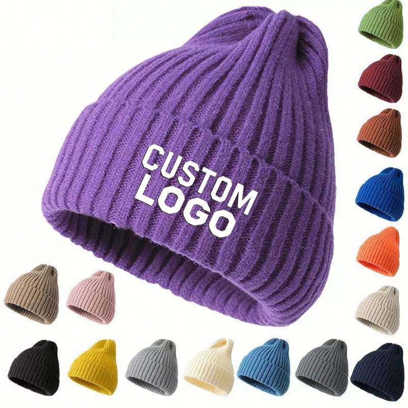 หมวกถักไหมพรมขนอัลปาก้าคุณภาพสูงสำหรับฤดูหนาวกลางแจ้ง หมวกขนสัตว์แบบปรับแต่งได้ สีพื้น สำหรับผู้หญิงและผู้ชาย