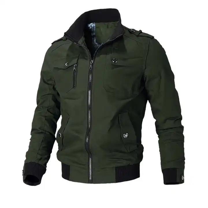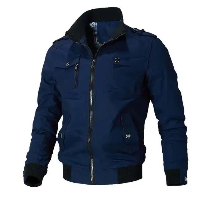 เสื้อแจ็คเก็ตบอมเบอร์ผ้าแคนวาสแขนยาวสำหรับผู้ชายใส่กันลมในฤดูหนาว สไตล์ลำลองแนวสตรีท คุณภาพสูง พร้อมโลโก้ด้านหน้า