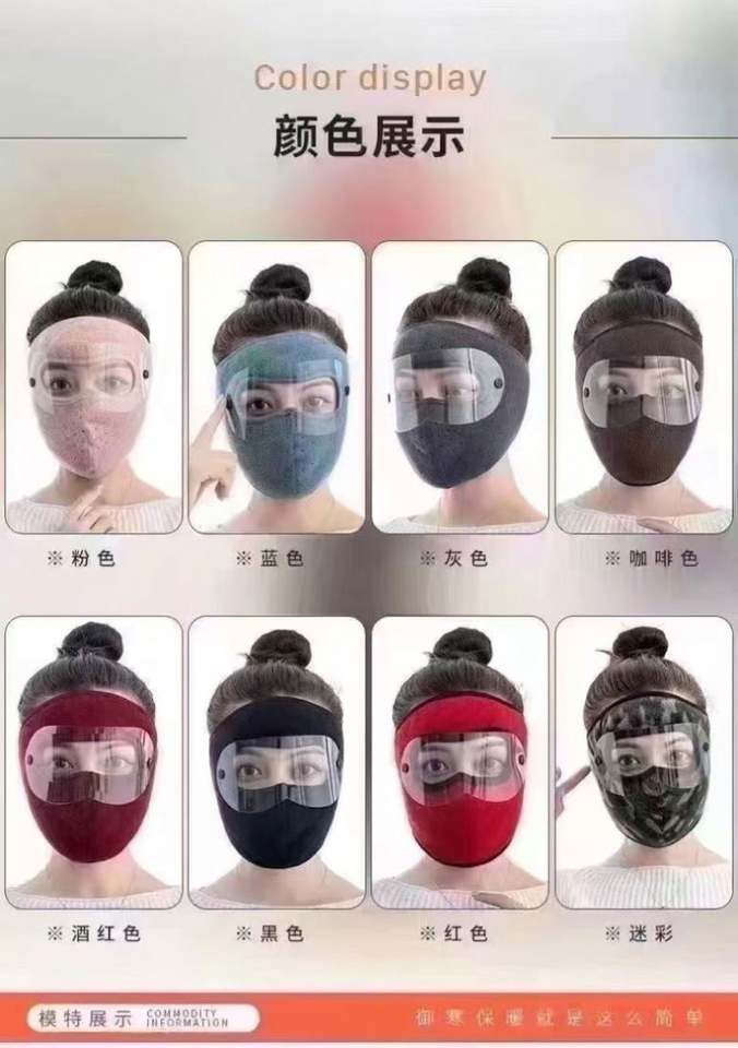 หน้ากากคลุมหน้าแบบเต็มใบสำหรับขี่มอเตอร์ไซค์ในฤดูหนาว ป้องกันลมหนาว พร้อมที่ปิดตา