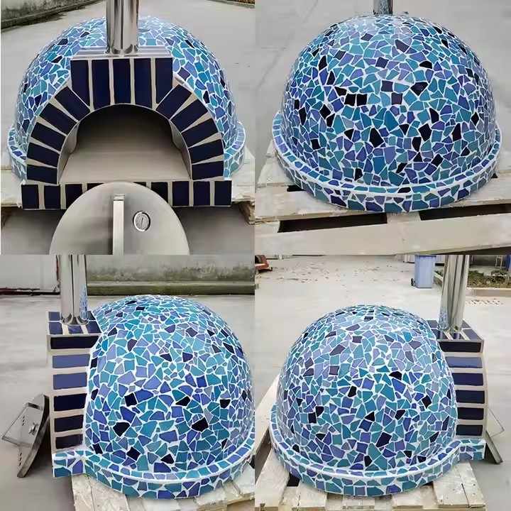 เตาอบพิซซ่ากลางแจ้งแบบใช้ฟืน ทำมือด้วยกระเบื้องโมเสคสีน้ำเงิน สำหรับทำอาหารและอบขนมในสวนหลังบ้าน