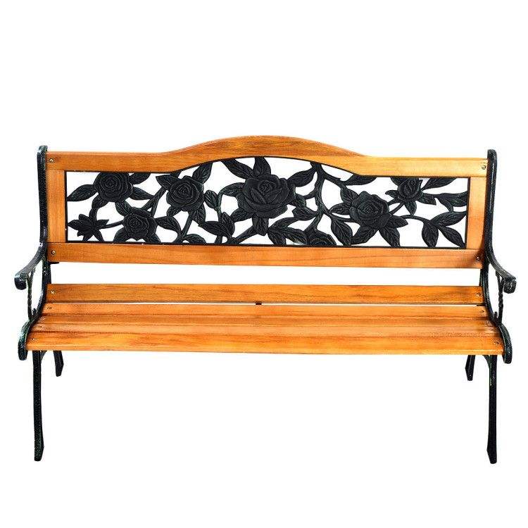 Outdoor Wooden Garden Bench Chair with Iron Armrest Loveseat for Patio Use