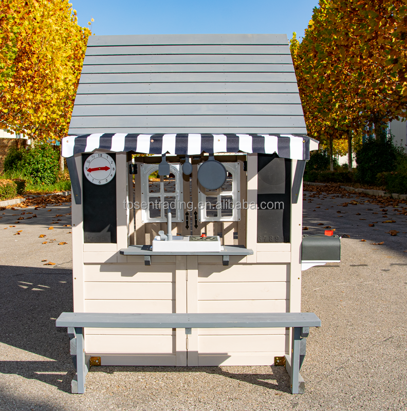 บ้านไม้เด็กเล่นกลางแจ้งพร้อมม้านั่ง สนามเด็กเล่น บ้านเด็กทรงทันสมัย บ้านไม้สำหรับเด็ก