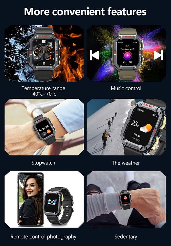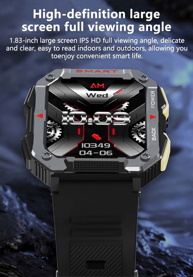 YK01Hd กลางแจ้ง1.83 IPS หน้าจอขนาดใหญ่ตรวจจับอัตราการเต้นของหัวใจโทรด้วย BT นาฬิกาอัจฉริยะติดตามการออกกำลังกายเพื่อสุขภาพสำหรับผู้ชาย