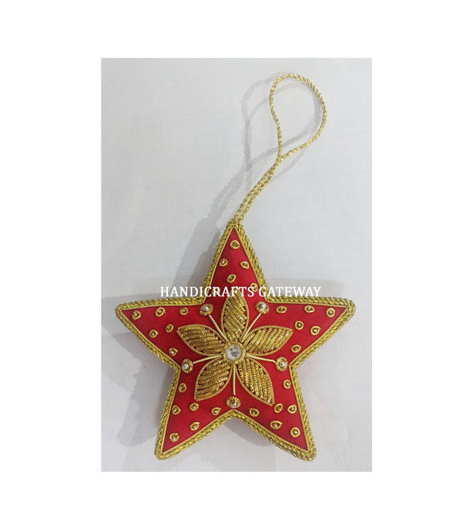 ตกแต่งปาร์ตี้คริสต์มาสกลางแจ้งและสวนพร้อมงานปักซารีสีทองทำมือรูปดาวเครื่องประดับแขวนคริสต์มาส
