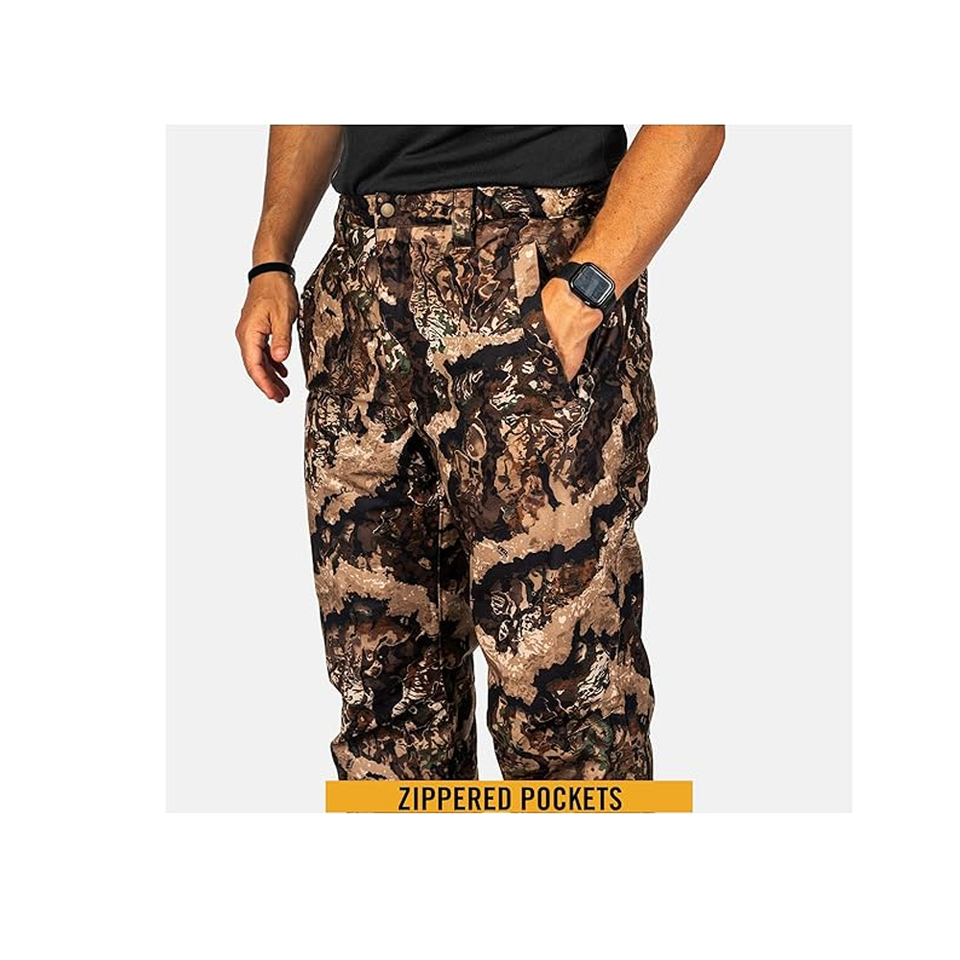 กางเกงล่าสัตว์ทนทานกลางแจ้งสำหรับผู้ชายกันลมลายพรางมีแถบคาดเอวปรับได้