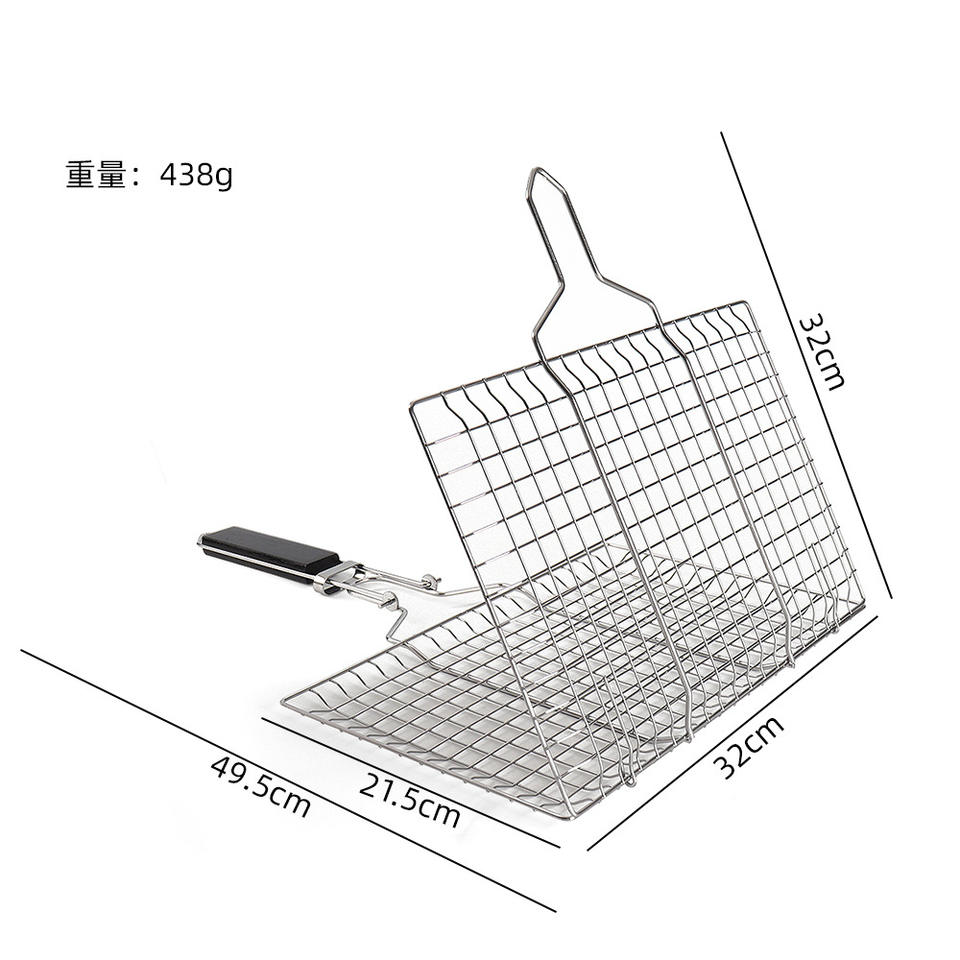 ตะแกรงย่างบาร์บีคิวแบบพับได้สำหรับใช้งานกลางแจ้ง พร้อมอุปกรณ์สแตนเลส ด้ามไม้ ทนทาน พกพาสะดวก ที่คีบอาหาร ที่คีบปลา แบบถอดประกอบได้