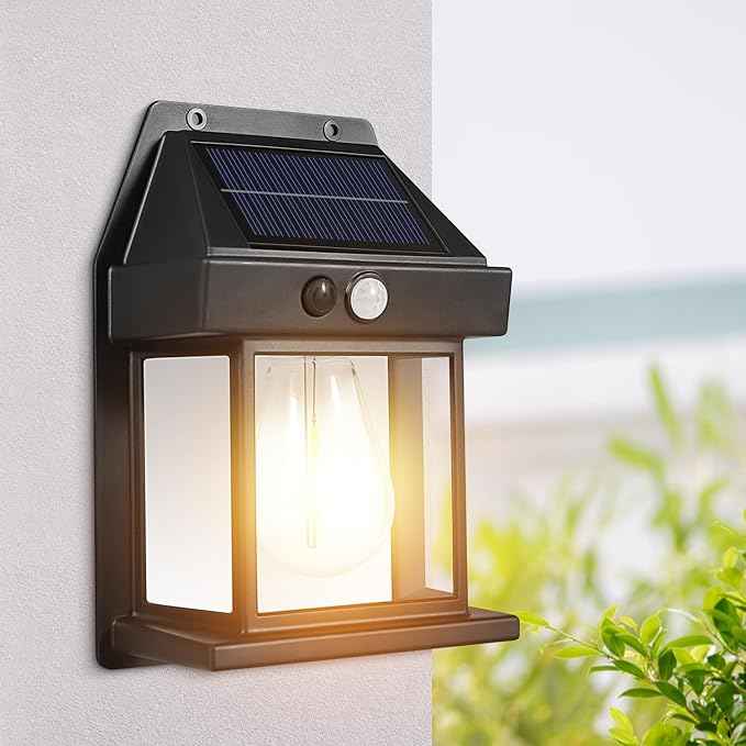 โคมไฟติดผนัง LED พลังงานแสงอาทิตย์กลางแจ้ง โคมไฟกันน้ำ โคมไฟสวนแบบเหนี่ยวนำร่างกายมนุษย์ โคมไฟสวน วิลล่า ไฟกลางคืน โคมไฟทำงาน