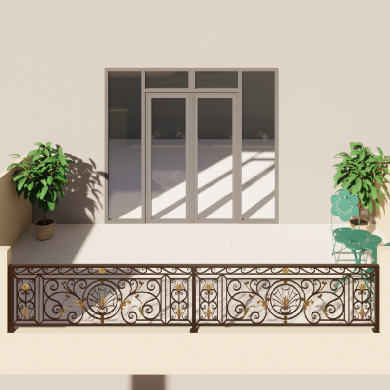 ราวเหล็กดัดกลางแจ้งที่ทันสมัยสำหรับระเบียงที่มีรายละเอียดงานฝีมือและการออกแบบตกแต่งศิลปะที่กำหนดเอง