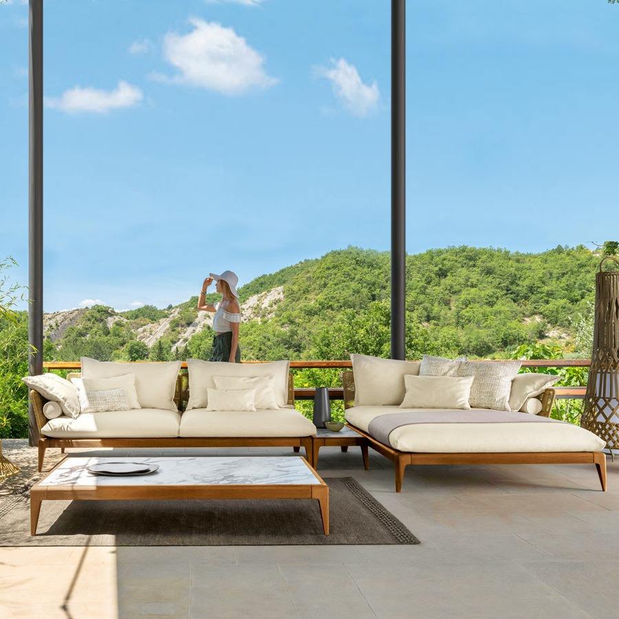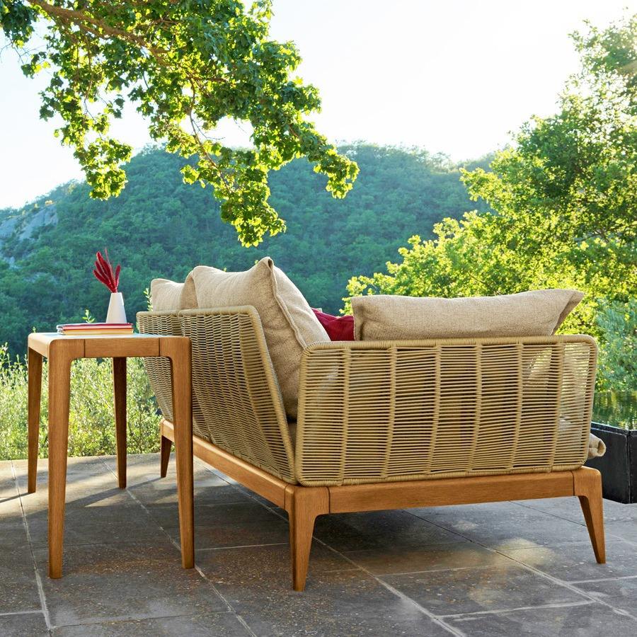 โซฟาไม้สักหวายกลางแจ้งกันน้ำและกว้างเหมาะสำหรับทั้งการนอนและการนอนโซฟาไม้เนื้อแข็ง