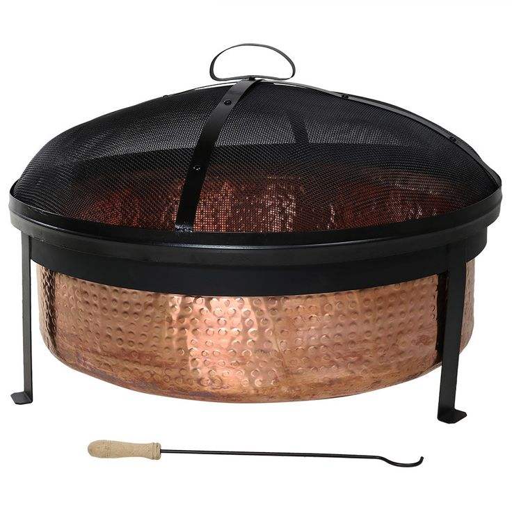หลุมไฟทองแดงกลางแจ้งทรงกลมสำหรับทำความร้อนที่ลานบ้านด้วยฐานโลหะที่แข็งแรงและฝาครอบหน้าจอประกาย