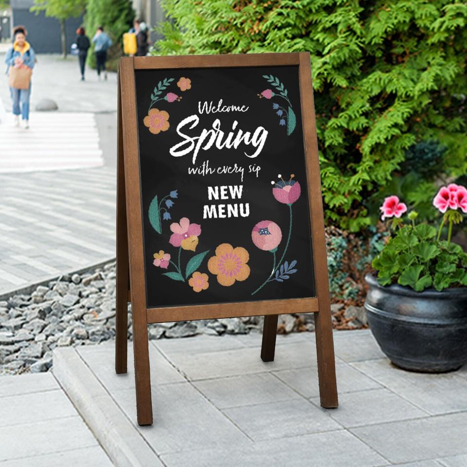 กระดานดำไม้สีดำสำหรับตกแต่งบาร์กระดานชอล์กทำจากไม้กลางแจ้ง