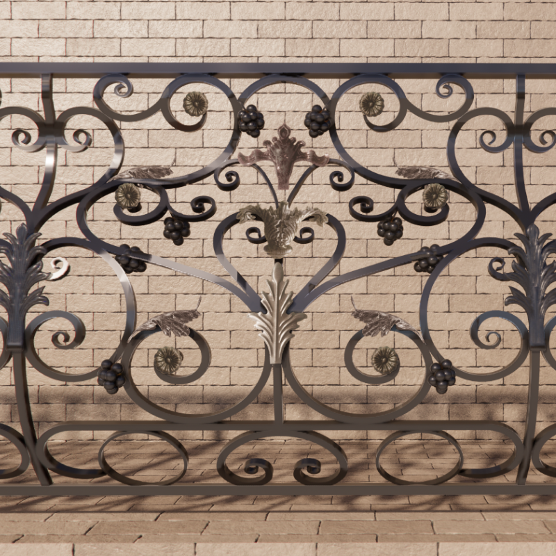 ราวระเบียงเหล็กดัดกลางแจ้งพร้อมแผ่นเหล็กหล่อราวเหล็กตกแต่งและทำด้วยมือสำหรับพื้นที่หรูหรา