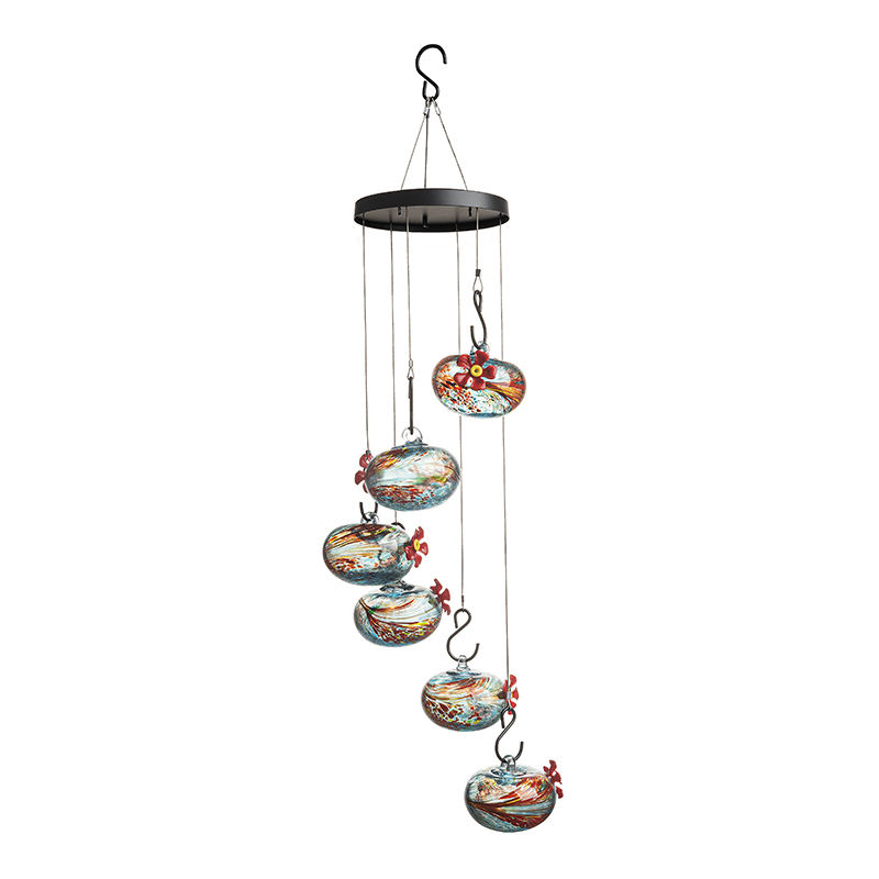 เครื่องให้อาหารนกฮัมมิงเบิร์ดแบบแขวนและแบบแขวนสำหรับกลางแจ้งกระดิ่งลมที่มีเสน่ห์สำหรับการจัดสวนและพื้นไม้ที่น่าสนใจสำหรับการดู