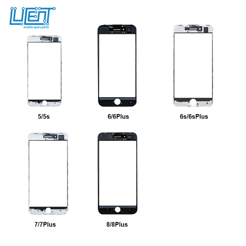 กระจกด้านนอกสำหรับ iPhone 5,5S 6 6S Plus 7 Plus 8 Plus อะไหล่ซ่อมไม่มีจอแสดงผลเฉพาะเลนส์กระจกหน้าจอสัมผัส + กรอบด้านหน้า + เครื่องมือ OCA