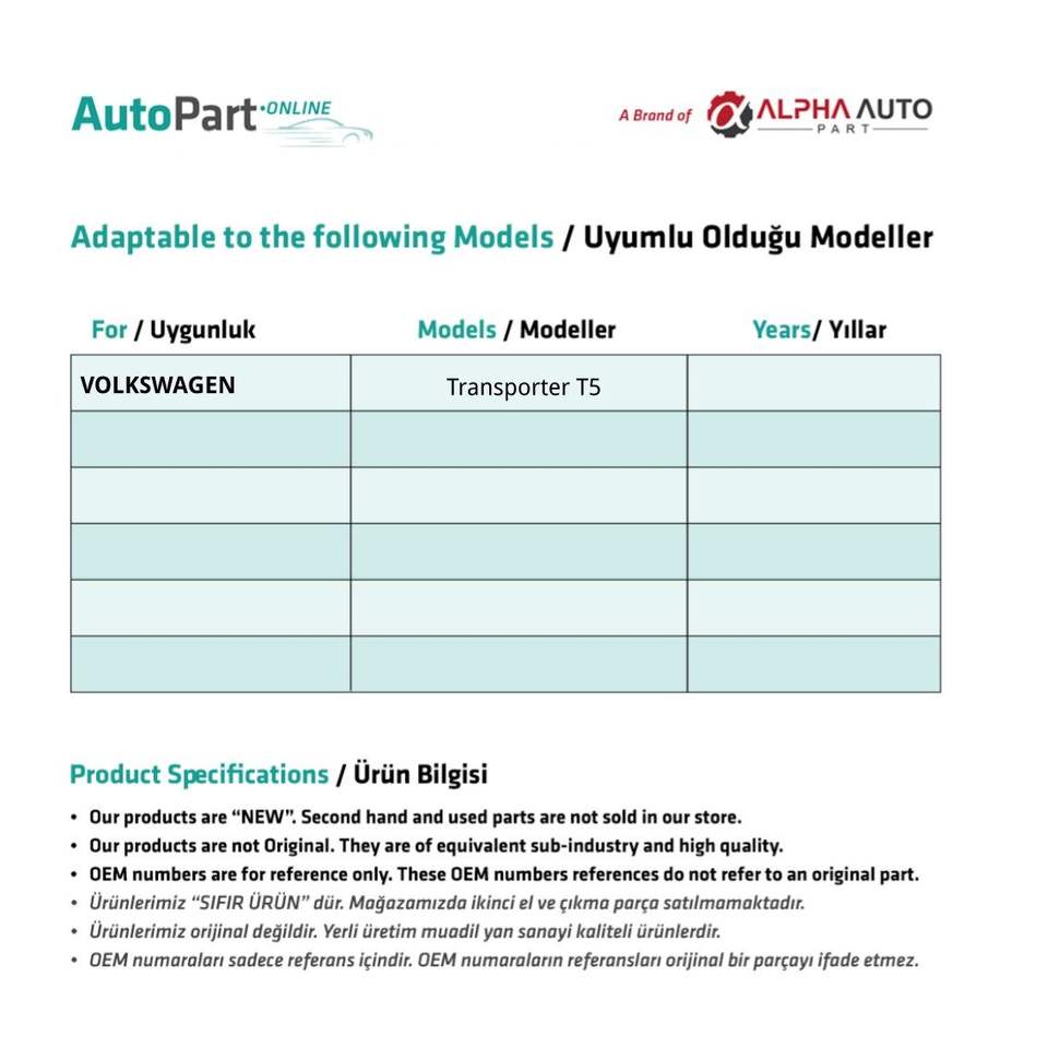 สายเปิดประตูกลางด้านนอกสำหรับ T5รถโฟล์คสวาเกน (ส่งจากผู้ผลิตตุรกี) รหัสผลิตภัณฑ์: WR2346