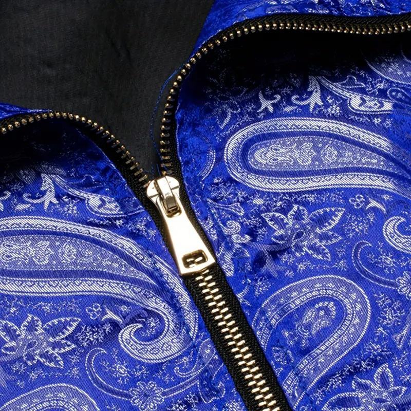 เสื้อแจ็คเก็ตบอมเบอร์น้ำหนักเบาพิมพ์ลายเพสลีย์สีน้ำเงิน ซิปหน้า สไตล์สตรีท วินเทจ แบบเบสบอล รับสกรีนโลโก้