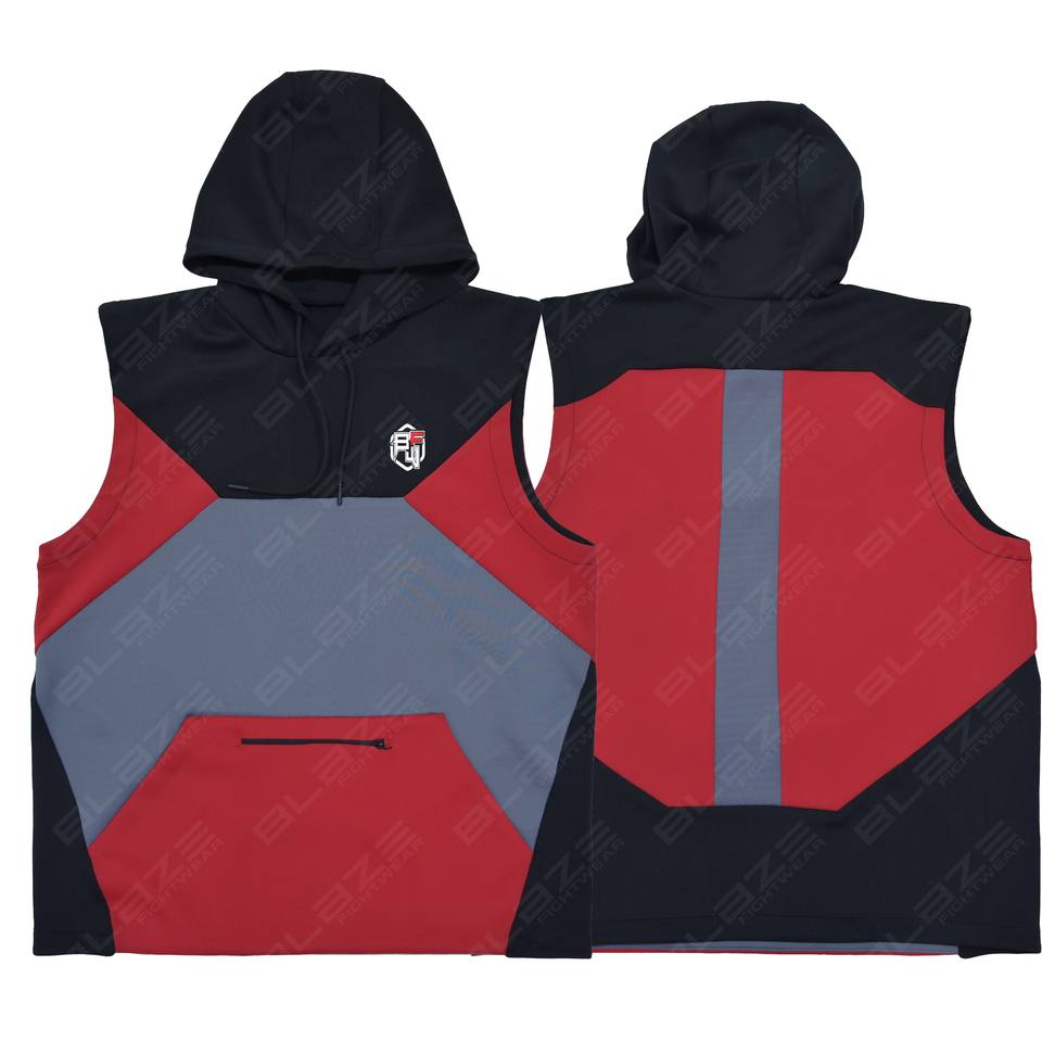 เสื้อกีฬาออกกำลังกายแบบไม่มีแขน เสื้อยืดฮู้ดแบบตัดชาย เสื้อยืดพลัสไซส์สำหรับผู้ชาย มีช่องซิป
