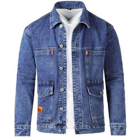 เสื้อแจ็คเก็ตยีนส์คาร์โก้หลายกระเป๋า สไตล์ยูทิลิตี้ สำหรับผู้ชาย เสื้อแจ็คเก็ตยีนส์ทนทานสำหรับงานกลางแจ้ง เสื้อโค้ทยีนส์