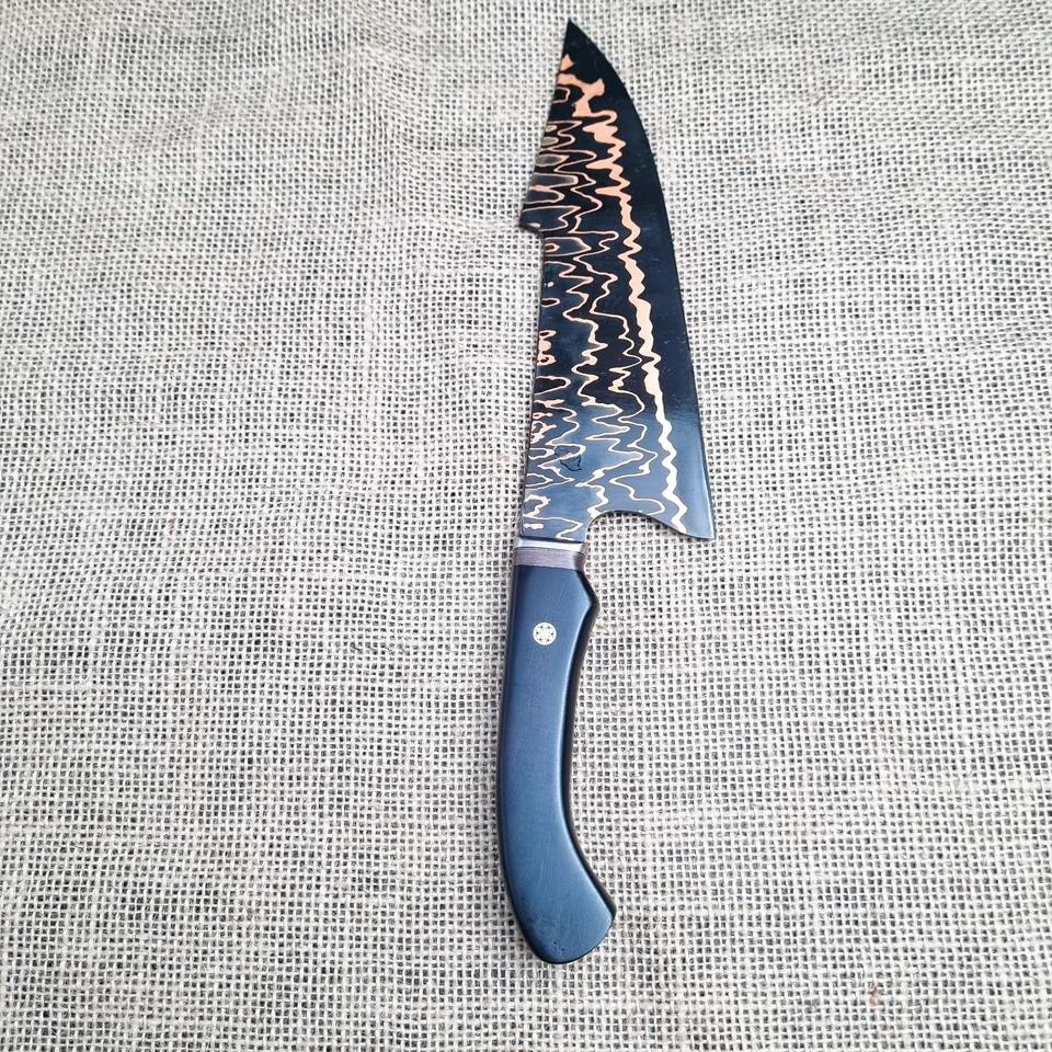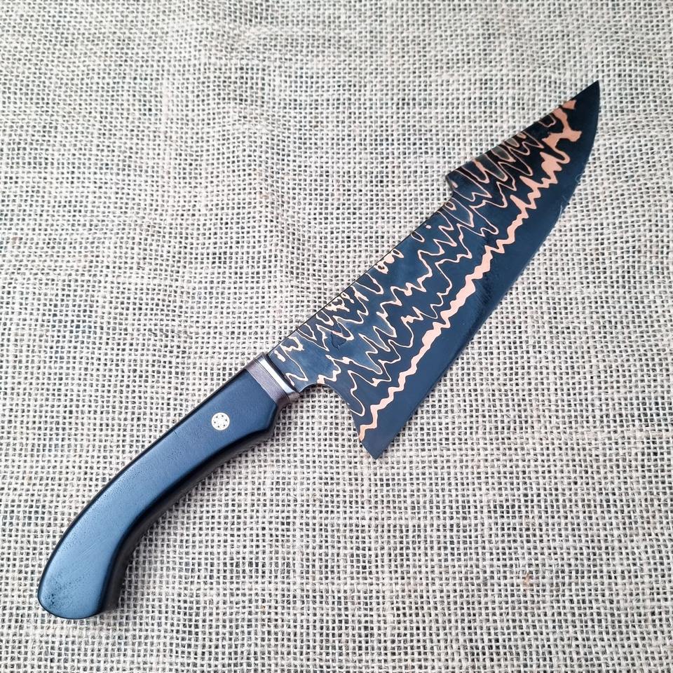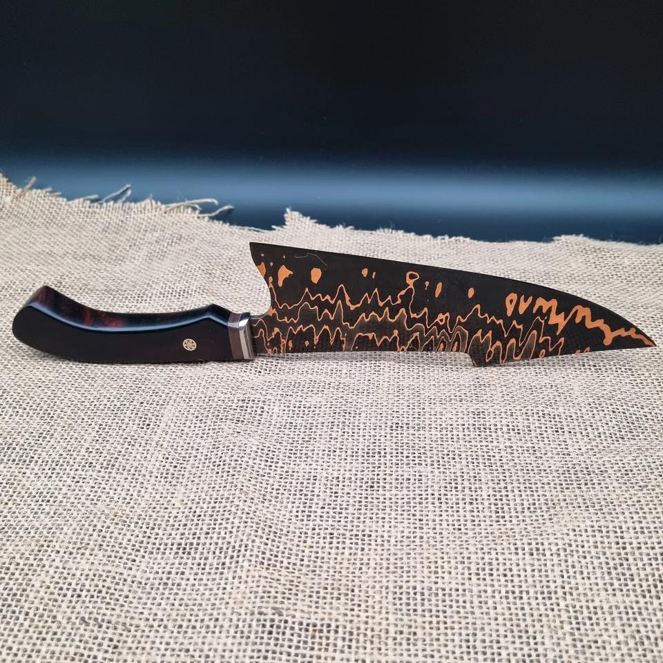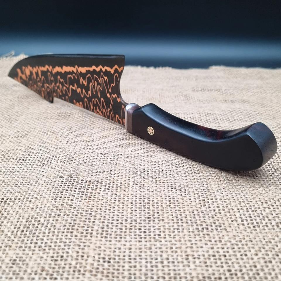 มีดทำครัวระดับมืออาชีพ ผลิตด้วยมือ ด้ามไม้มะเกลือลายทองแดง เหล็กกล้าคาร์บอนคุณภาพเยี่ยม