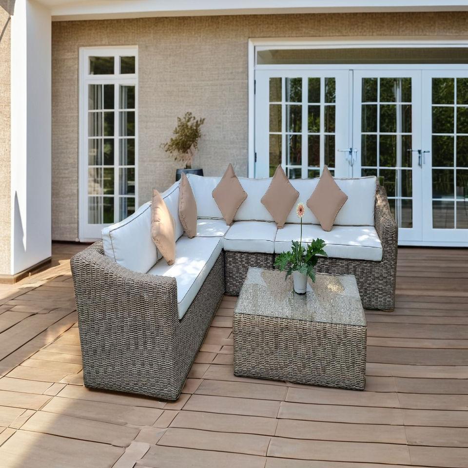 ชุดโซฟาสีขาวดีไซน์เป็นเอกลักษณ์:หวายหลายสี