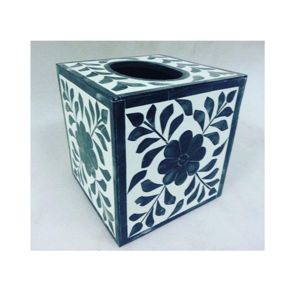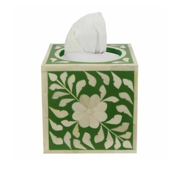 กล่องทิชชู่ฝังกระดูกทรงสี่เหลี่ยมขัดเงาทำมือ