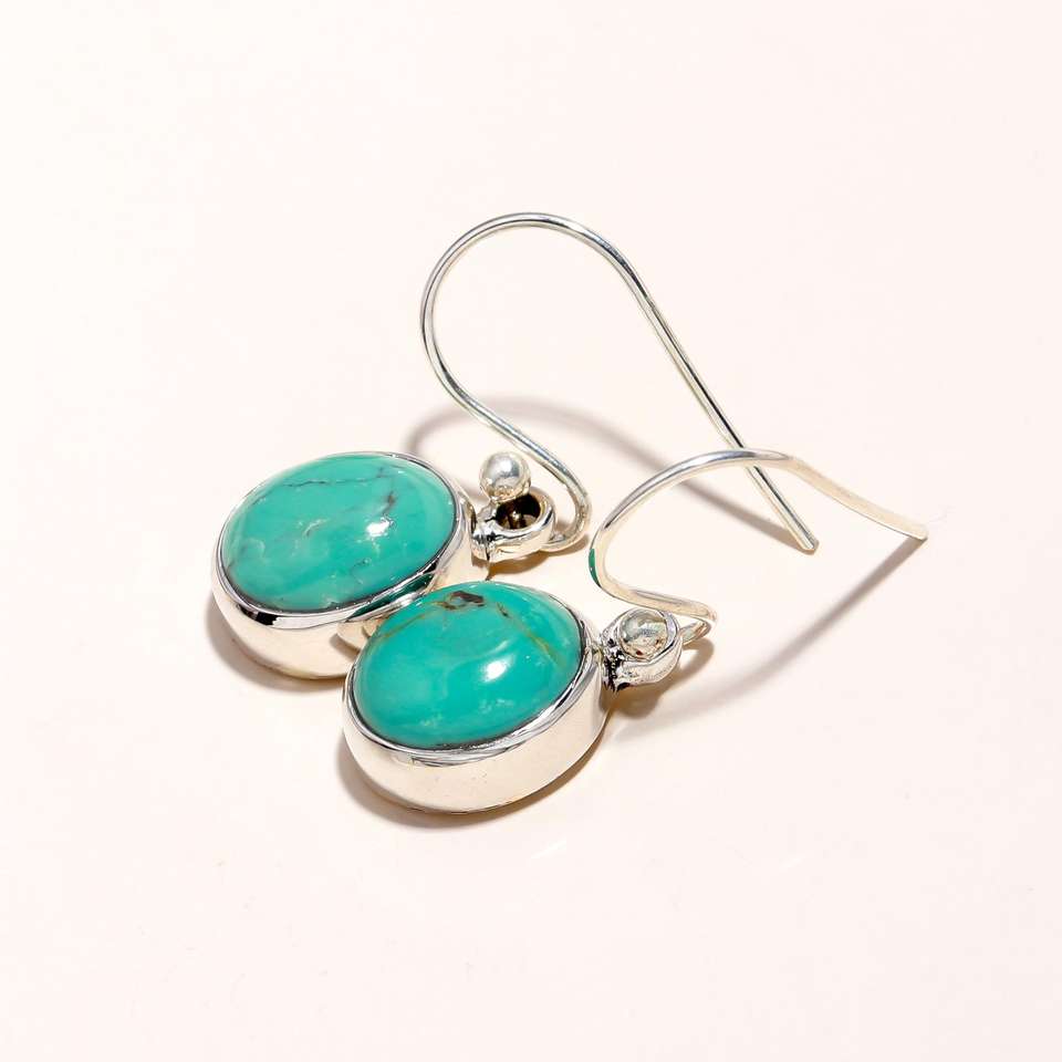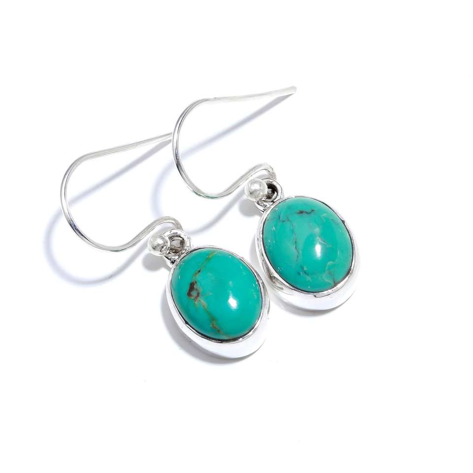 ต่างหูพลอยเทอร์ควอยซ์ธรรมชาติทำมือทำจากเงินสเตอร์ลิง925