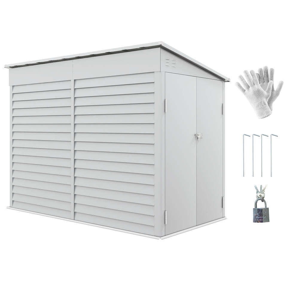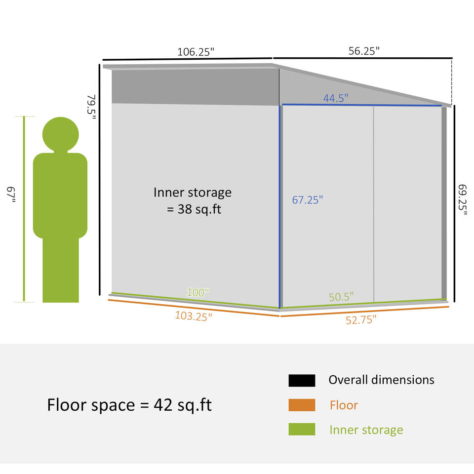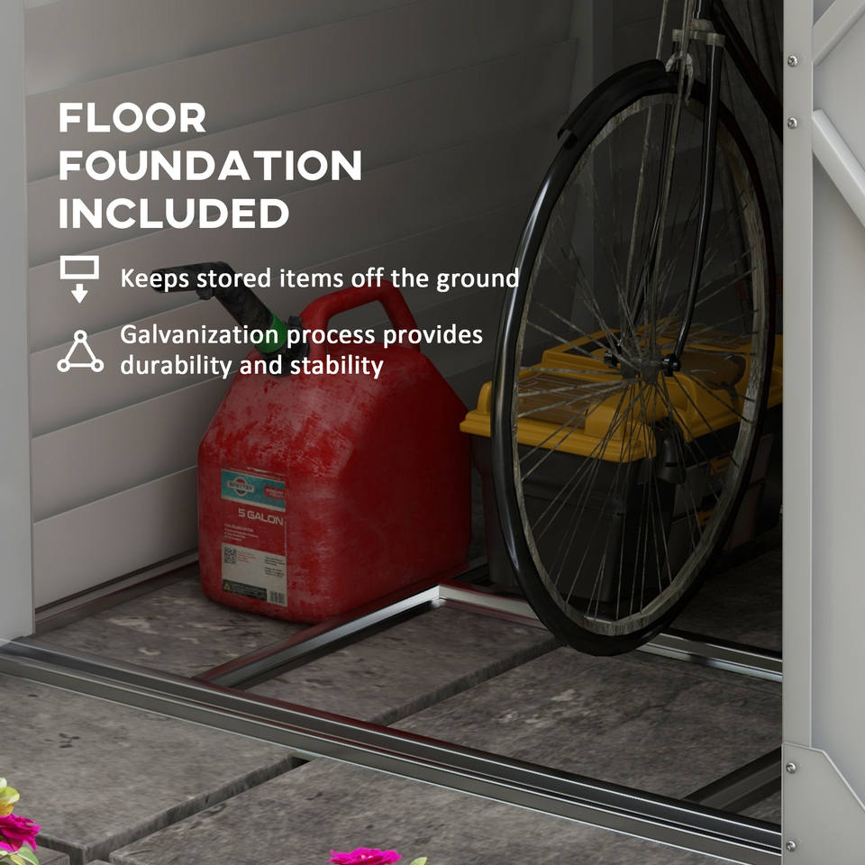 โรงเก็บของกลางแจ้ง Outsunny ขนาด 4.6' x 9' โครงเหล็ก, โรงเก็บของแบบพิงผนัง, บ้านเก็บเครื่องมือโลหะ